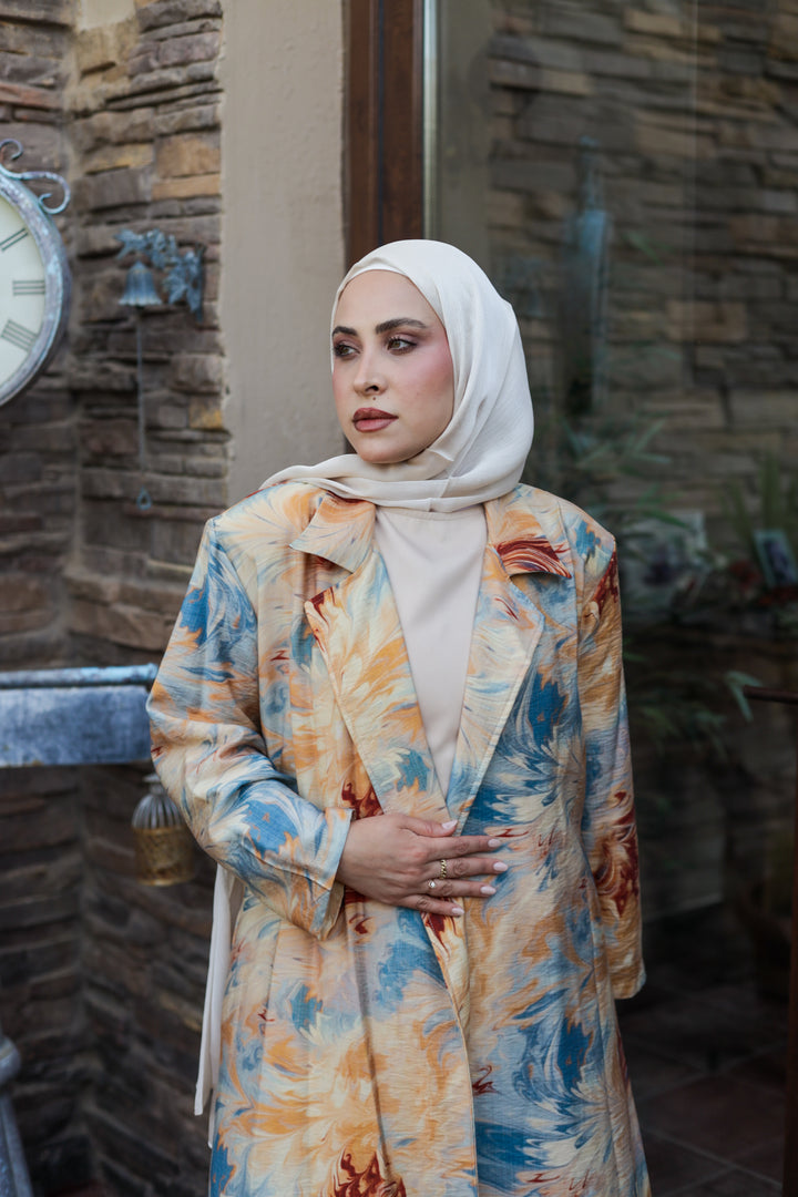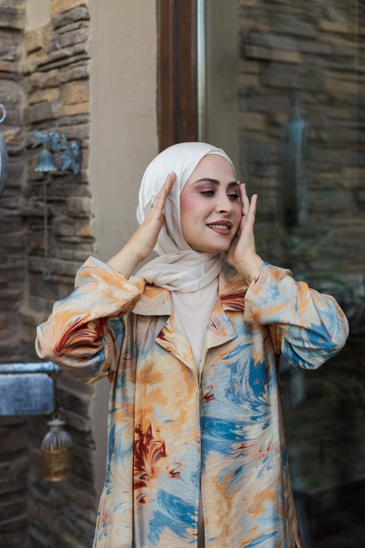 Eman is a stylish three-piece set, featuring pants, an inner shirt, and a long cardigan. With its refreshing color combination and luxurious fabric, it’s designed to give you the perfect look.
